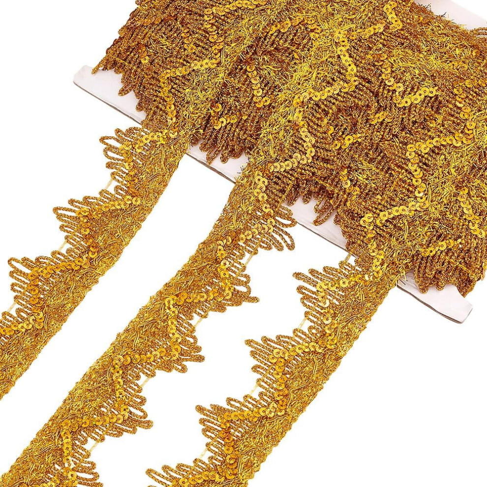 14.2 Yards 1.5" Golden Sequinned Lace Trim, Polyester Metallic Gimp Ribbon for DIY Craft, Wedding, Costume, Clothing & Bag Decor
