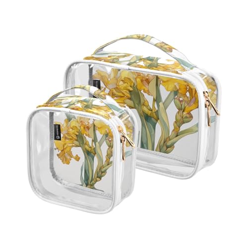 2 Pack Clear Decorative Hanging Toiletry Bags TSA Approved Floralmorphic Letter Y Yellow Ginger Flower Oil Painting Transparent Cosmetic Travel Bag Men’s Shaving kit para maquillaje