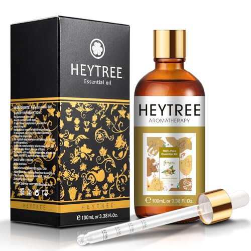 HEYTREE Ginger Essential Oil Warming Aromatherapy Oil for Relaxation, Skincare, Massage, and DIY Natural Beauty Products-100ml