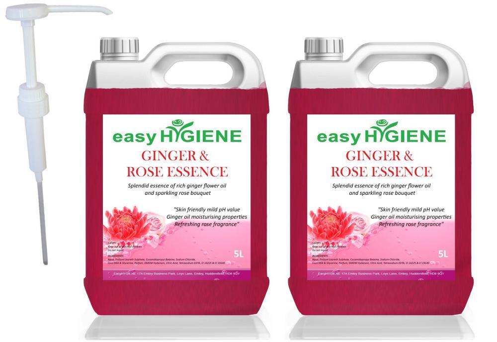 PELICAN PUMP + ROSE and GINGER OIL 10L Liquid Flower Red Pink Hand Soap 2x 5L