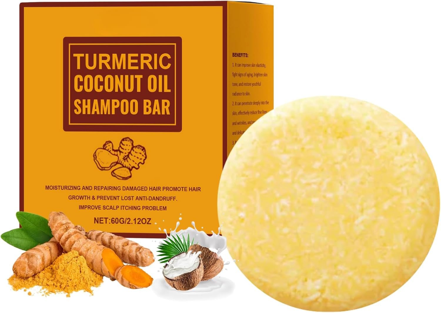 Turmeric Shampoo Soap Bar with Coconut Oil, Ginger Shampoo Bar for Hair Growth,