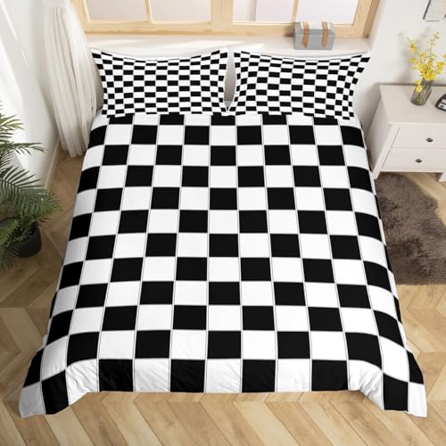 Black And White Buffalo Plaid Checkered Bedding Set Reversible Geometric Grid Comforter Cover Double For Kids Boys Men Farmhouse Gingham Duvet Cover Set Soft Lattice Quilt Cover Zipper 2 Pillow Cases