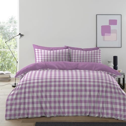 GC GAVENO CAVAILIA Gingham Check Duvet Cover Single - 2 Piece Tartan Bedding Check Single Duvet Cover Set With Pillowcase - Washable Reversible Microfiber Plain Quilt Cover Set - (135x200 Cm), Lilac