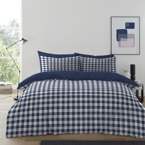 furn. Hartsford Gingham Check Duvet Cover Set – Classic Checked Bedding (Navy – King U.K. Standard)