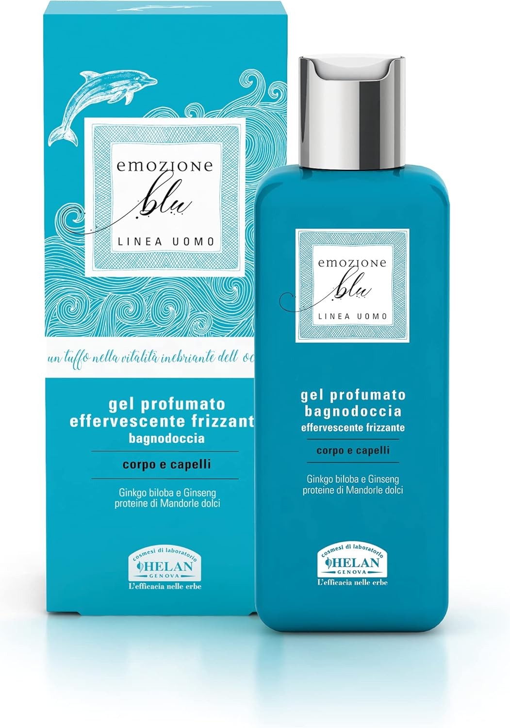 Helan Emozione Blu - Fizzy & Invigorating Mens Shower Gel & Shampoo with Ginsen