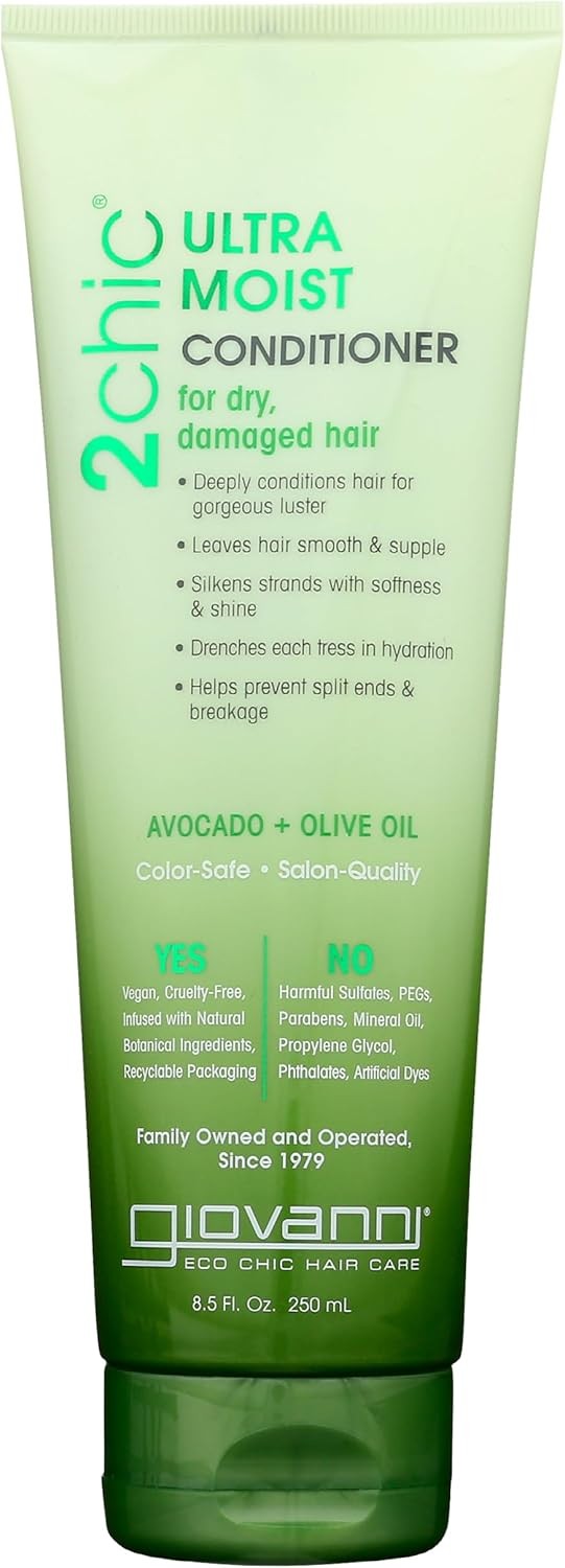 Giovanni 2Chic Avocado & Olive Ultra Moist Conditioner 8.5oz Ultra-Moisturizing Conditioner for Soft, Hydrated Hair