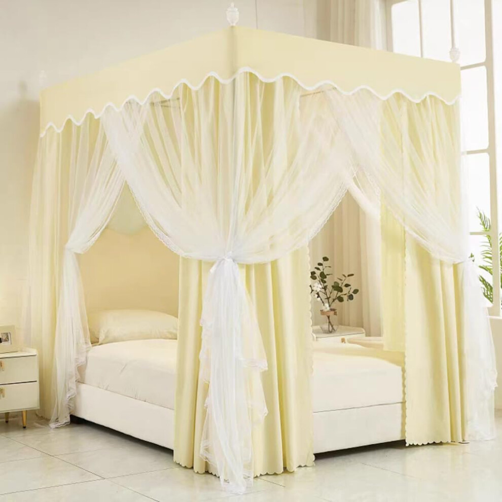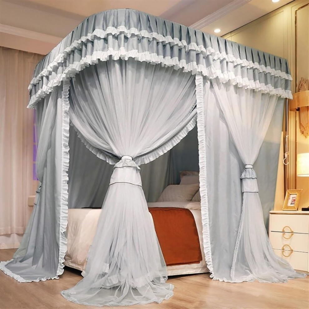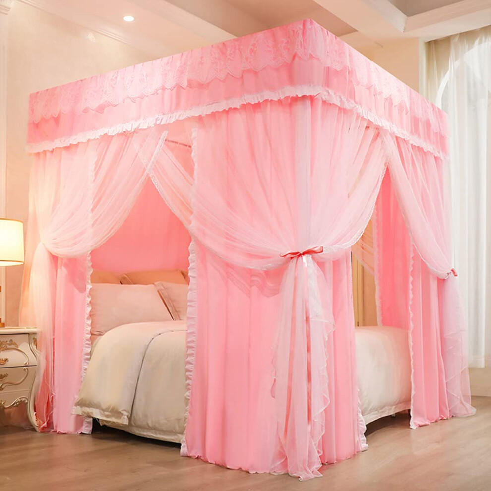 Mosquito Net Princess Style for Girls and Women's Beds, Elegant Canopy 4-Post Wedding Bedroom Decoration