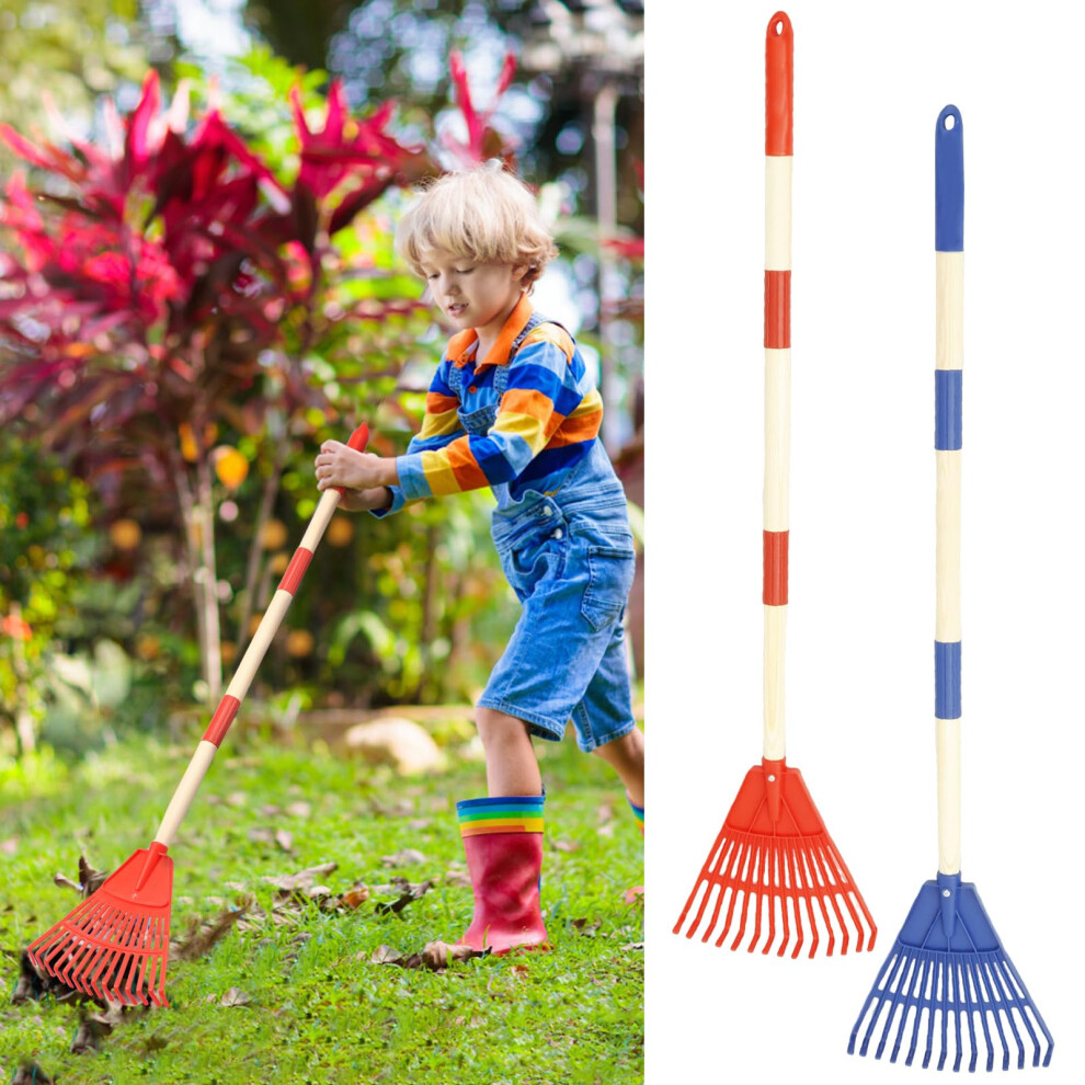 2Pcs Kids Rakes for Leaves,33.9in Adjustable Lawn Rake with Detachable Wood Handles,Kids Garden Tools Gifts Suitable Boys and Girls For Flower Beds