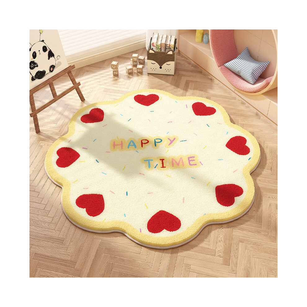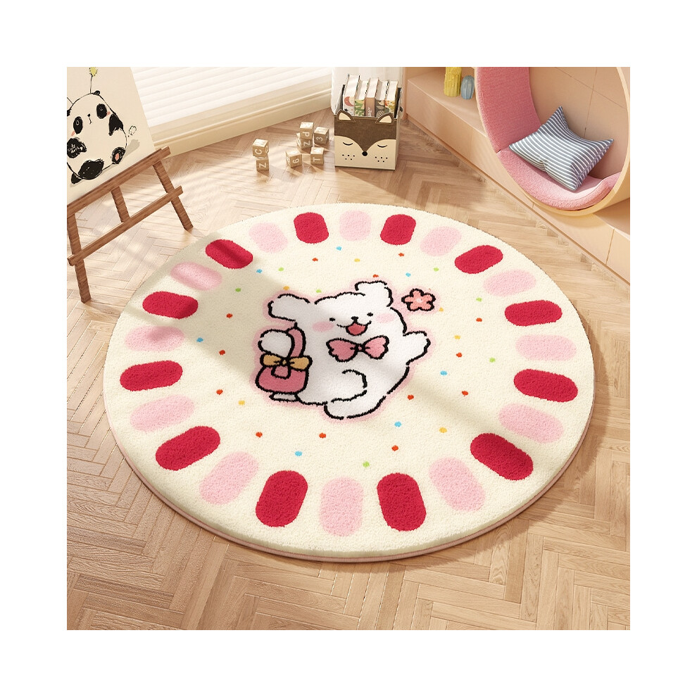 (The little white dog had a happy picnic, 80*80cm) Cartoon bow, round, round faux cashmere carpet, home sofa, study round blanket, girl's bedroom beds