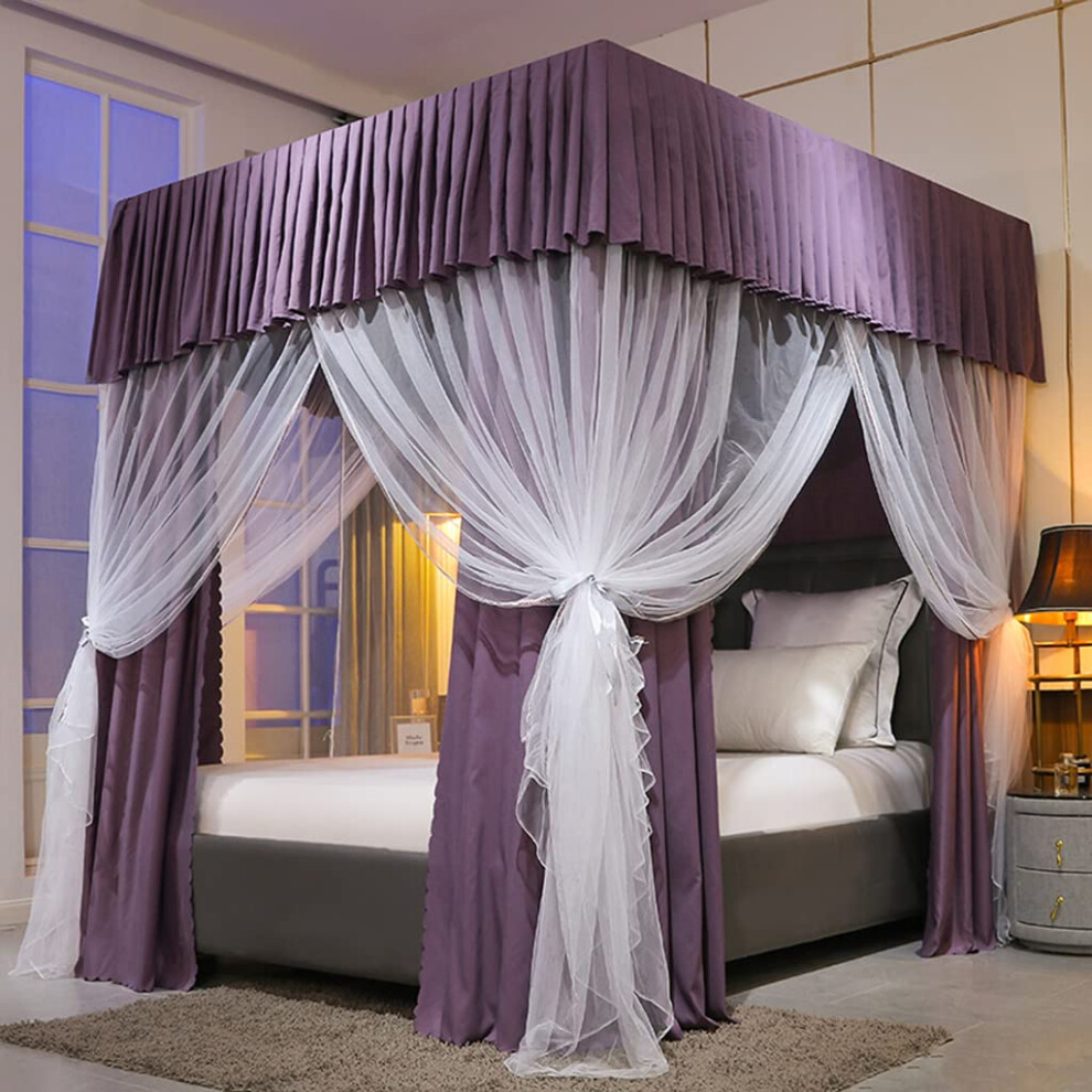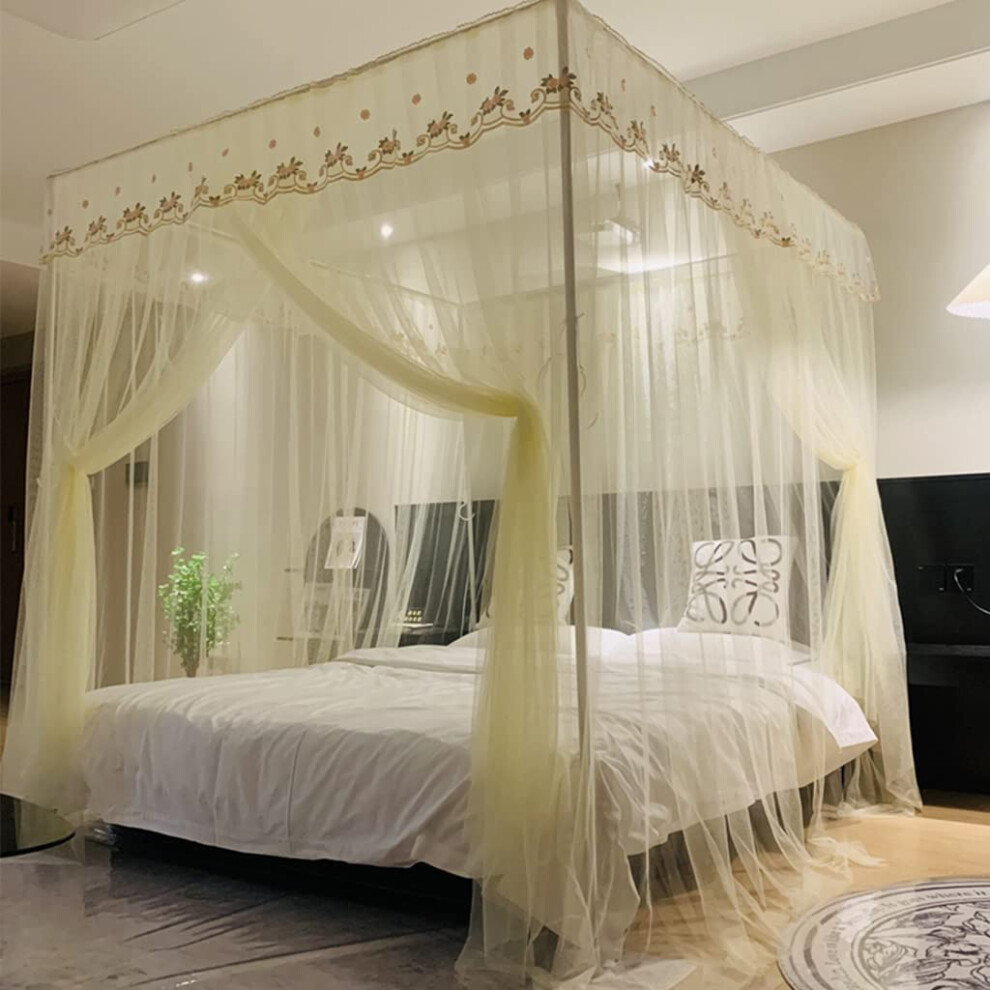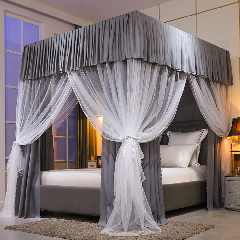 Elegant Luxurious Bed Canopy with 4 Corner Posts and Mosquito Net for Full Queen King Size Beds, Girls Bedroom Decor