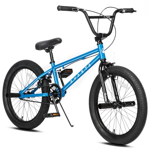 AVASTA 20 Inch Freestyle Youth BMX Bicycle Big Kids Teenager Bike for Age 6 7 8 9 10 11 12 13 14 Years Old Boys Girls Teen Adult and Beginner-Level Rider with 4 Peg, Blue