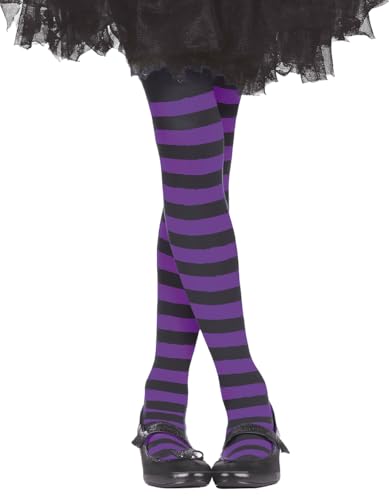 Fiestas Guirca Purple and Black Striped Tights for Girls, Size 3-6 Years