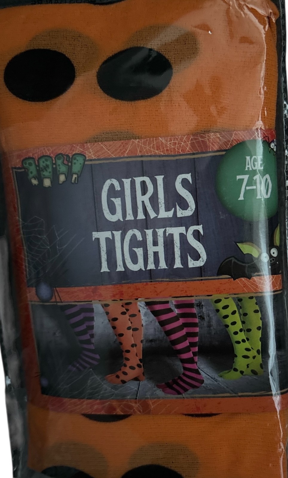 Girls Halloween Tights 7 to 10 years Kids Fancy Dress Orange & Black Spots NEW