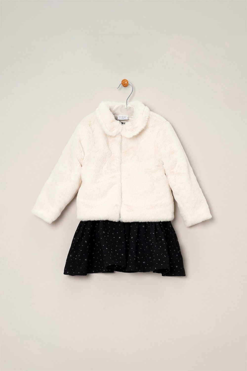 Miss Baby Girl Girls Fur Jacket, Dress And Tights Outfit Set - Black - Size 18-24M