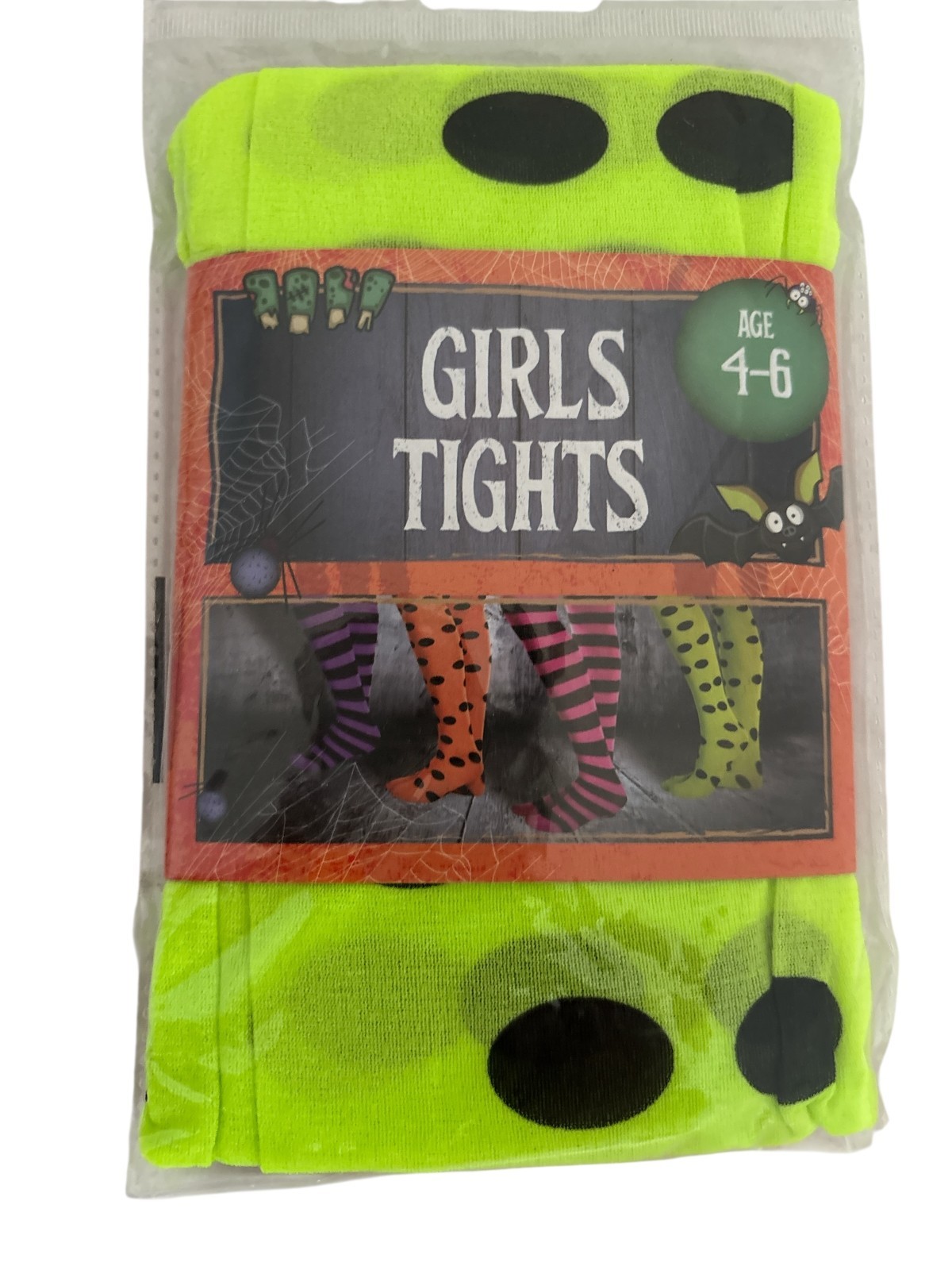 Girls Halloween Tights 4-6 years Kids Fancy Dress yellow Black Spots NEW