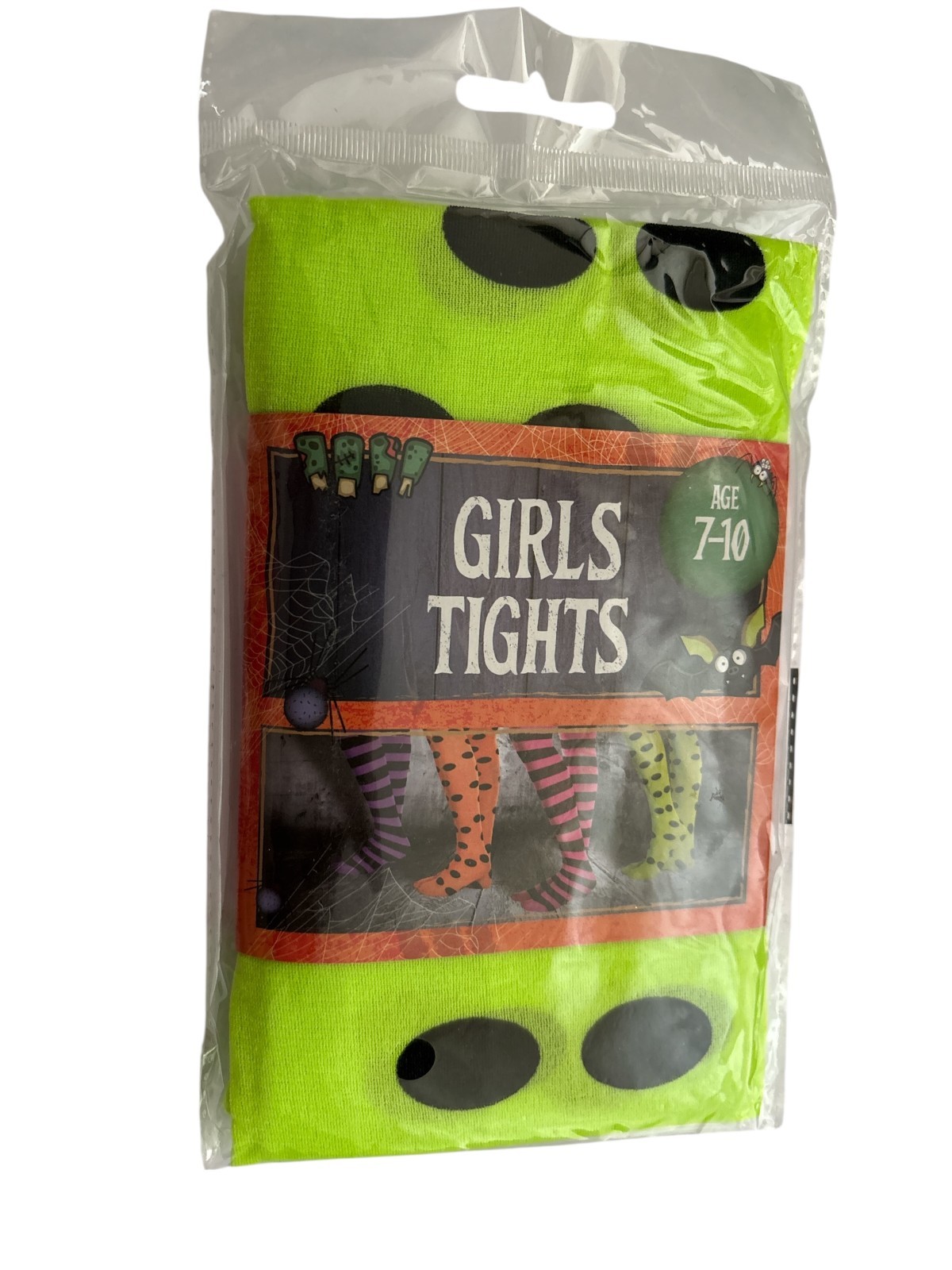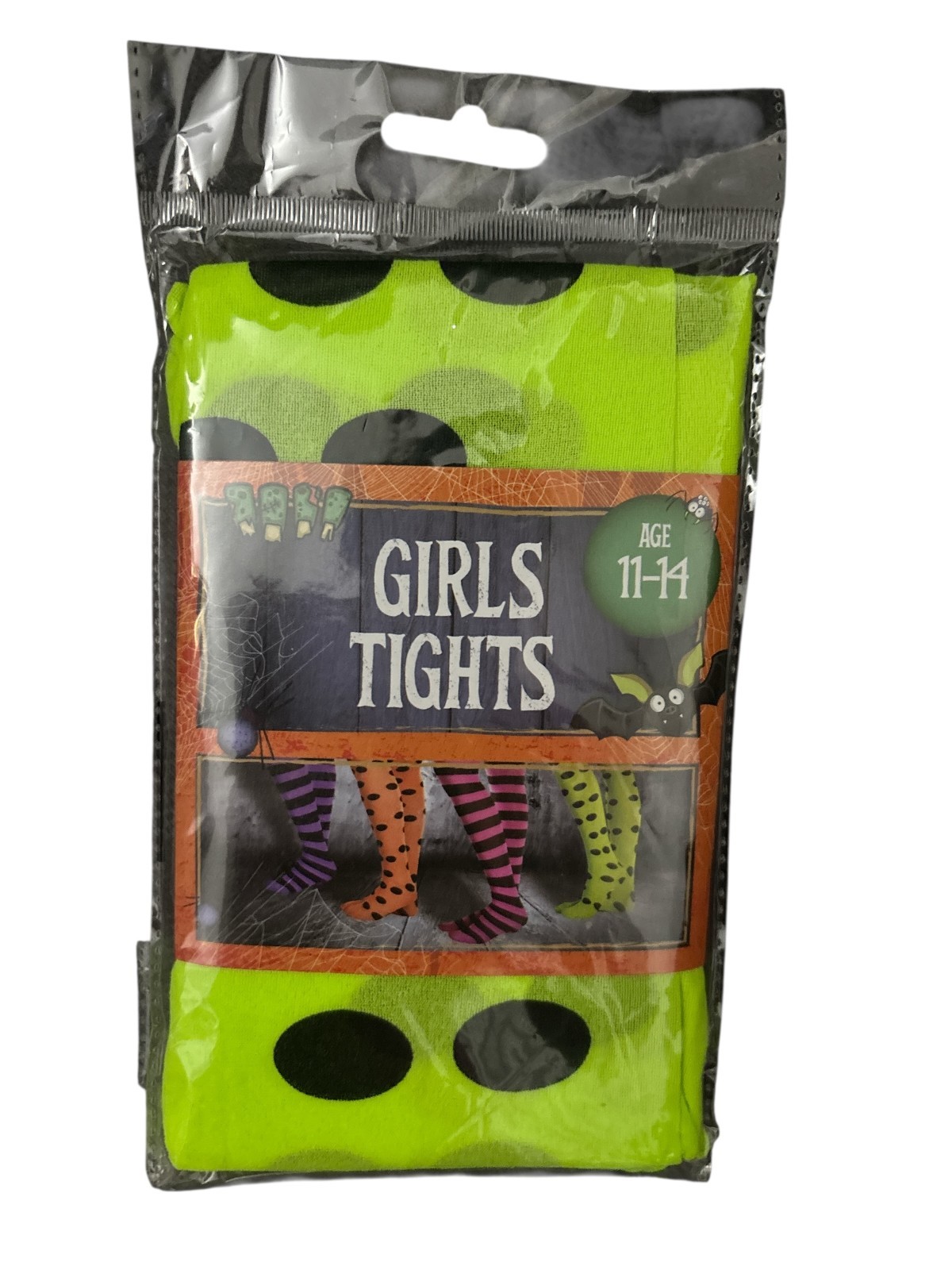 Girls Halloween Tights 11-14 years Kids Fancy Dress yellow Black Spots NEW