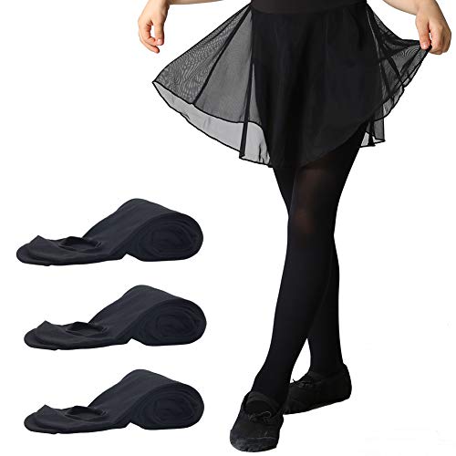 Meng Jiaran 3 Pairs Black Girls Tights Footed School Tights Microfiber Ballet Dance Pantyhose for 8-10 Years Stage Performances, Dance Classes, Daily Practice, XL