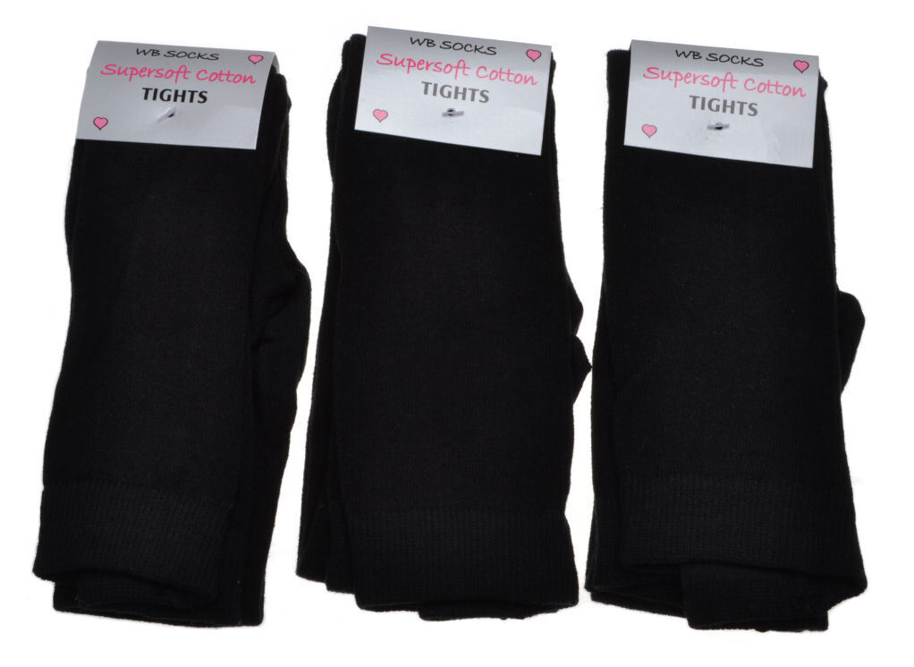 WB Socks Girls Plain Black Tights 4 pairs per pack