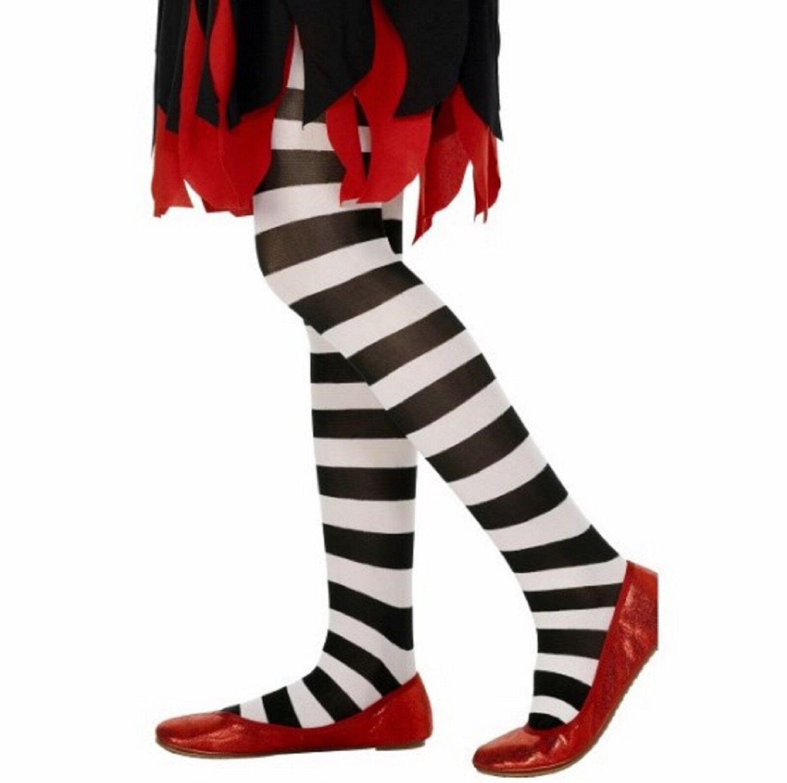True Face Girls Tights Leggings Halloween Kids Costume Vertical Strip Pirate Black White Bottom Black White 6-8 Years