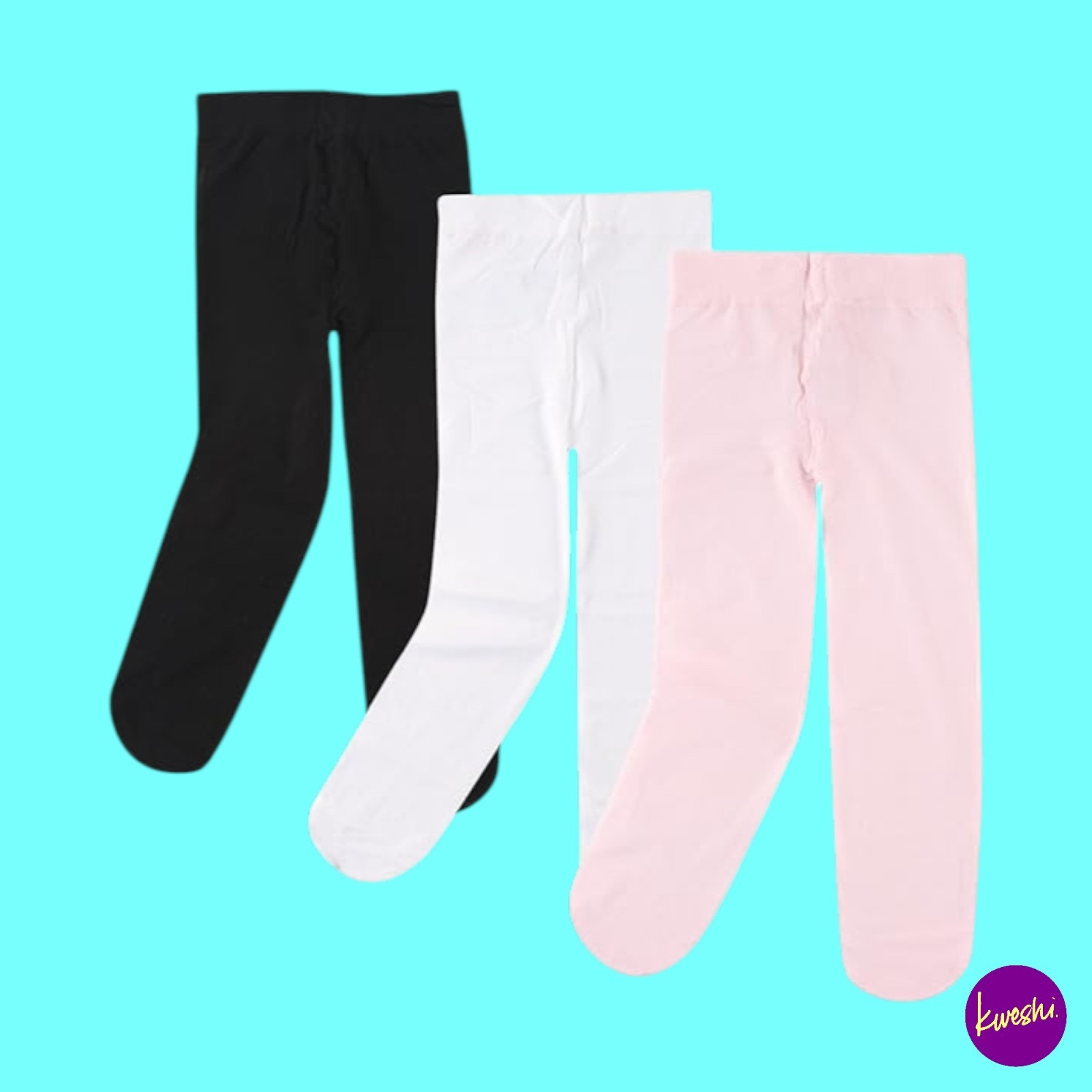 EVERSWE Girls' Microfiber Tights, 3-Pack, White/Black/Pink, Age 6–8 Years