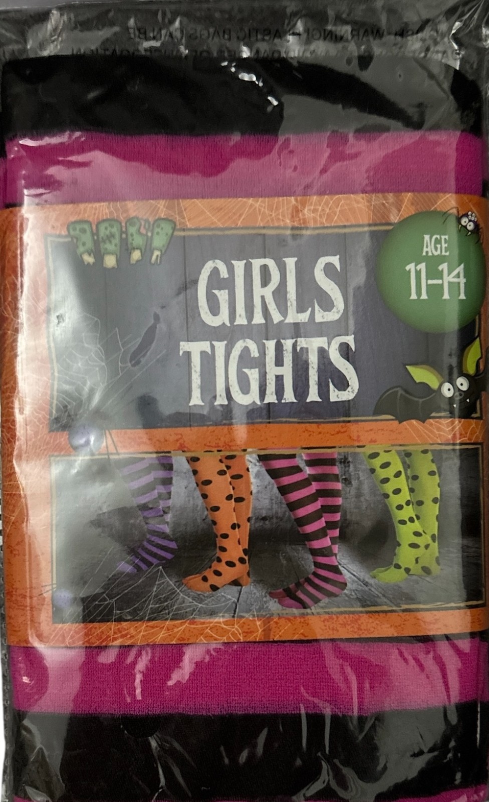 Girls Halloween Tights 11-14 years Kids Fancy Dress pink Black Stripes NEW