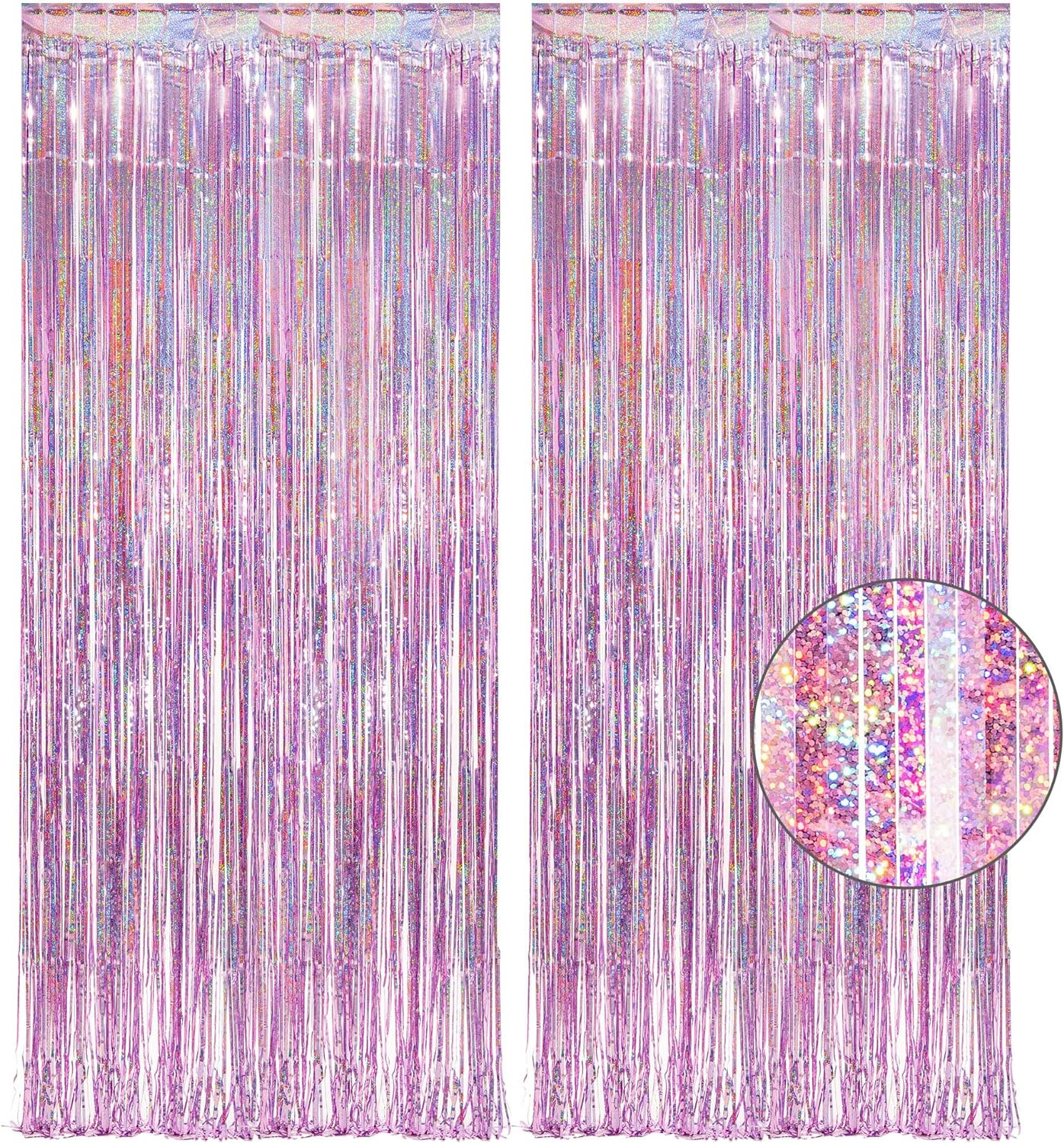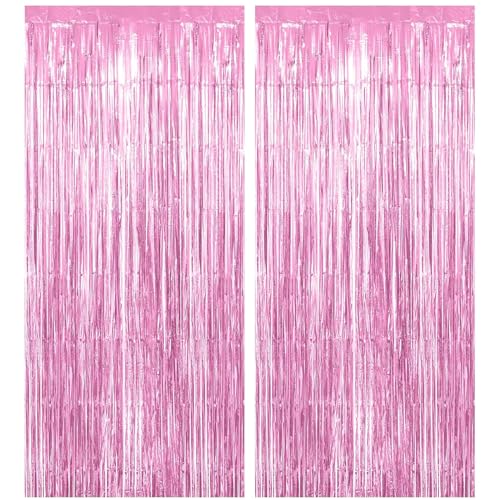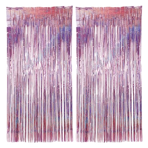 Cuackamily 2pcs Tinsel Curtain Pink Glitter Girls Tinsel Curtains Pastel Foils Fringe Background Streamer for Unicorn Mermaid Fairy Princess Birthday School Wedding Disco Party Decoration(1m*2.5m)