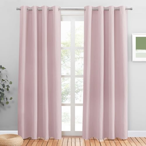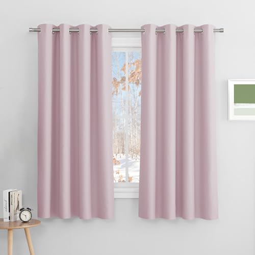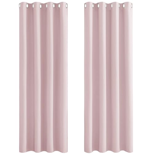 Deconovo Thermal Insulated Blackout Curtains, Cold-Proof, Modern Eyelet Design, Girls’ Bedroom Curtains, 117 x 160 cm (Width x Height), Pink, Set of 2