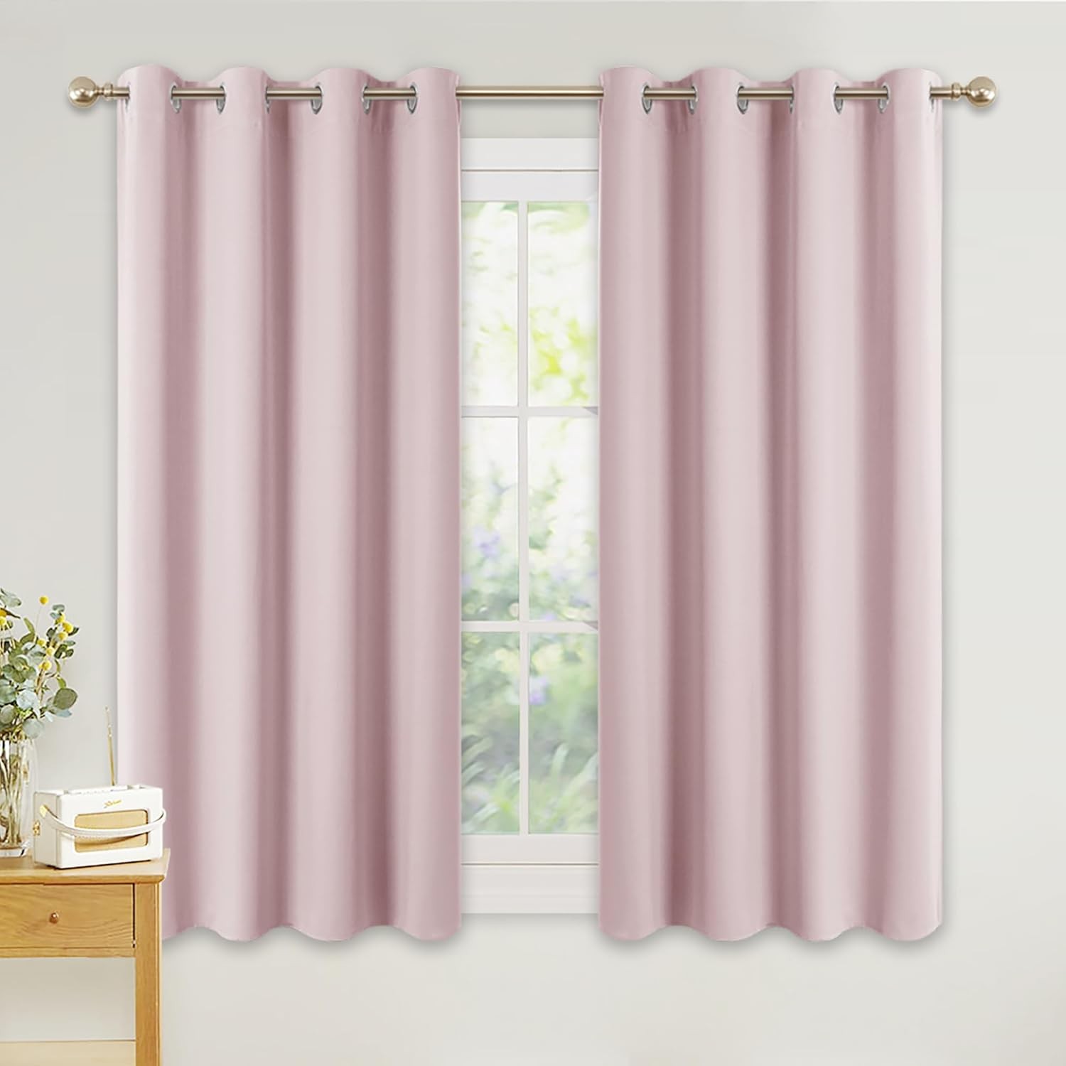 CUCRAF Girls Curtains Pale Pink 2 Panels 46" W x 54" L Ring Top Blackout Velvet