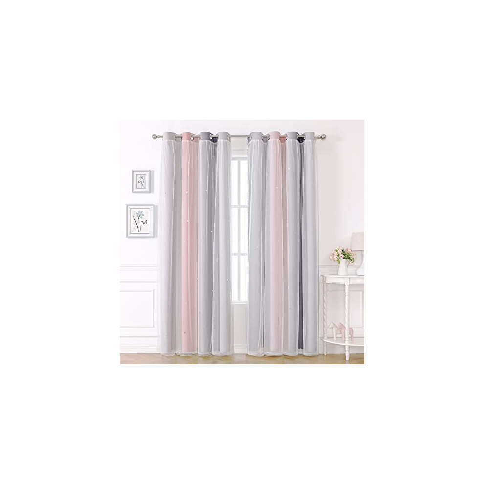 2 Panel Girls Princess Curtains, Double Layer Fantasy Curtains, Kids Room Darke