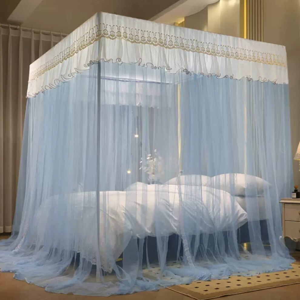 Princess Mosquito Net For Girls Bed Canopy Curtains With Three Openings Blue Princess Style Bedroom Decoration Gift