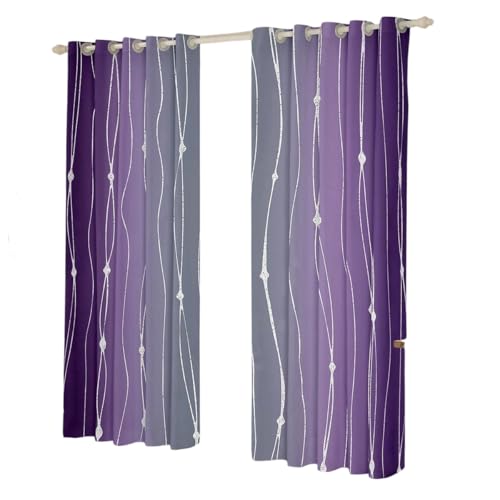 Homewish Gray and Purple Blackout Curtains for Girls Watercolor Gradient Curtains & Drapes, Geometric Abstract Curtains Wave Stripe Window Drapes, Modern Aesthetic Black Out Curtains 66" Wx90 L