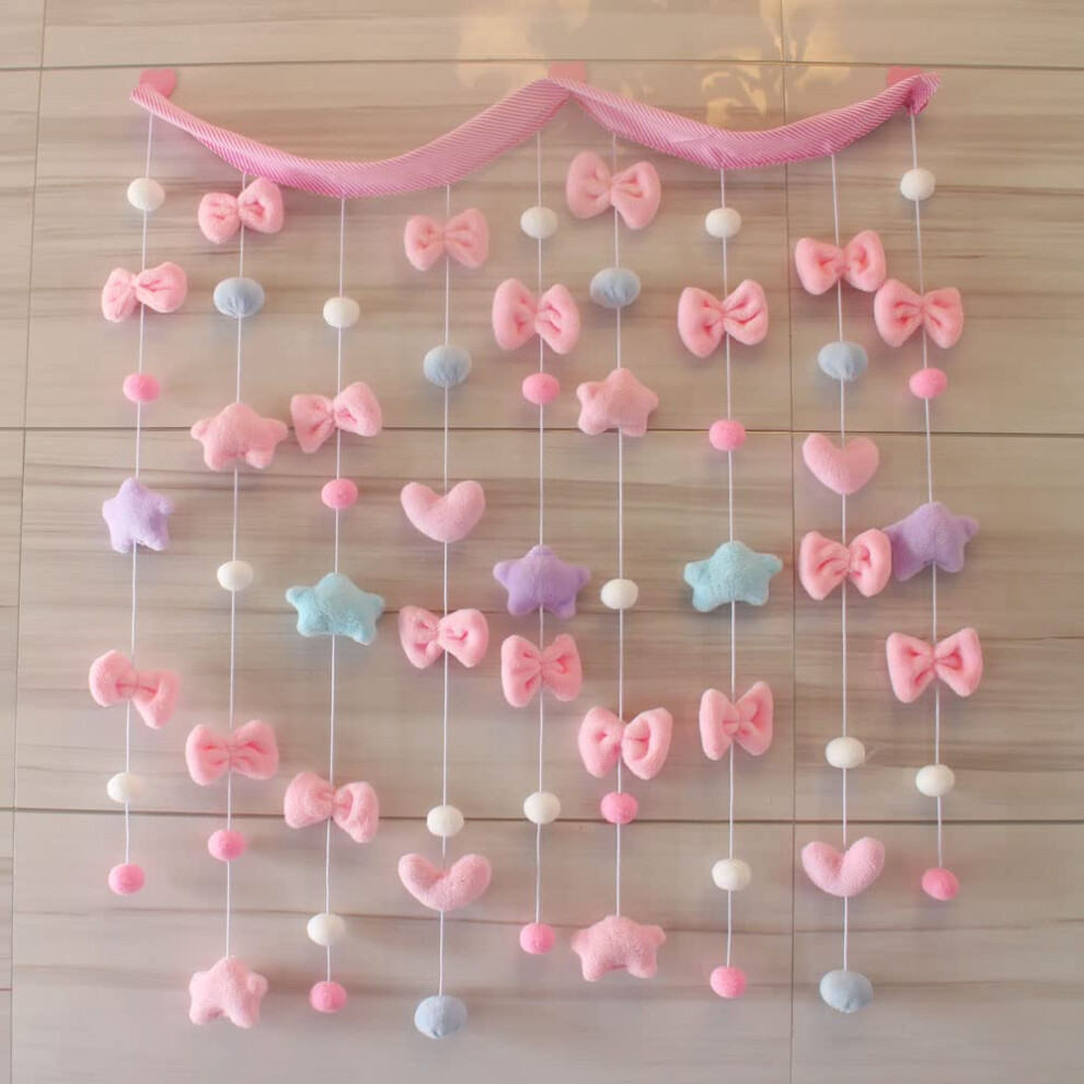 SWEXURY Kawaii Doorway Curtains Girls Bedroom Wall Hanging Decor Cute Fluffy Star Bowknot Pentacle Garland Door Strings Nursery Curtain for Baby Room