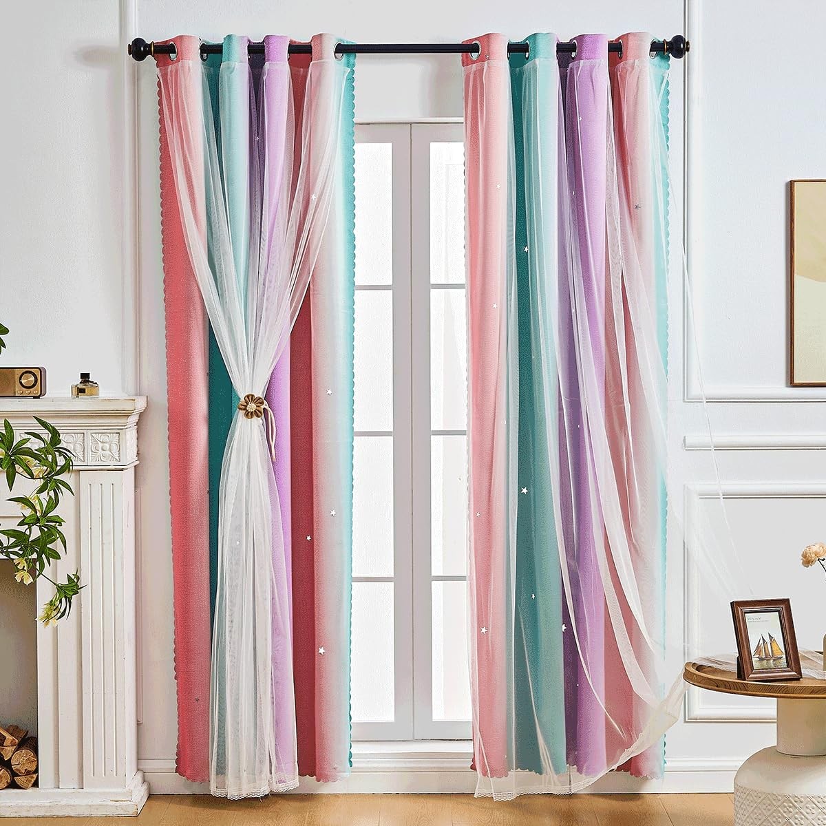 Windows Drapes, Double Layers Romantic Sheer Kids Children Girls Curtains