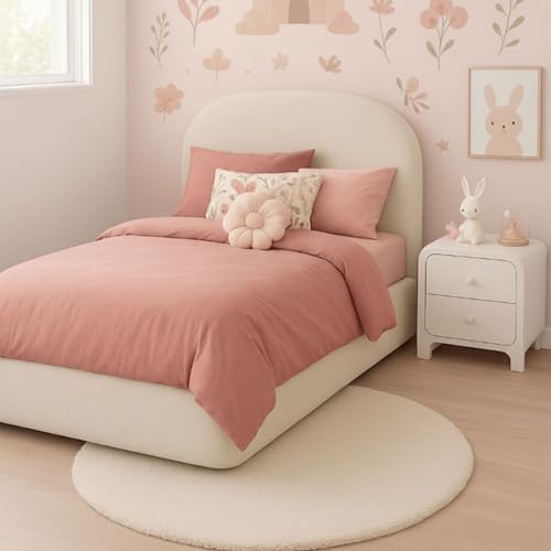 OHS Rainbow Double Duvet with Pillowcases, Girls Double Bedding Set Ultra Soft Decorative Kids Bed Sets Rainbow Flowers Bedding - Pink