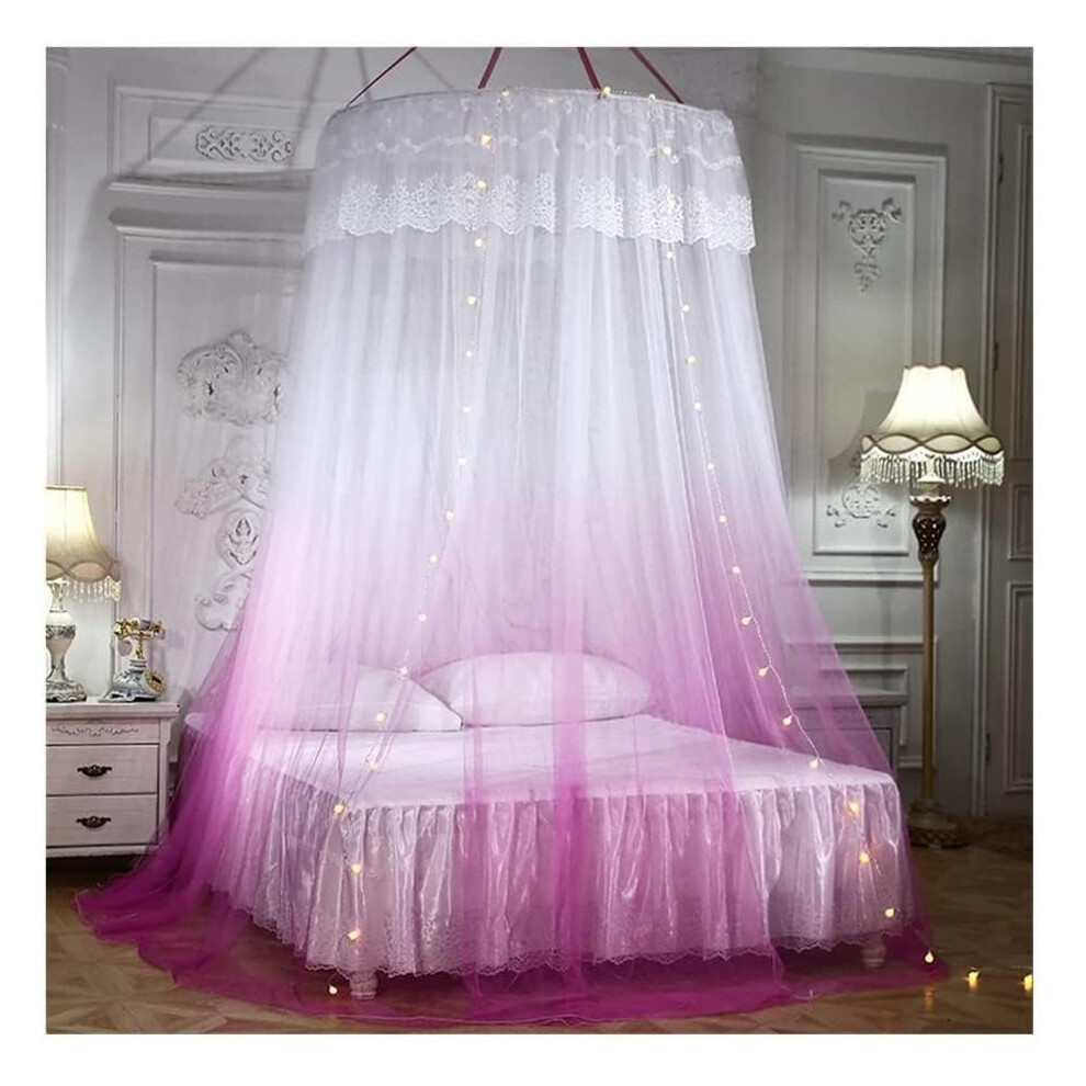 Princess Bed Canopy for Girls, Double Layer Round Bed Curtain, Transparent Mesh Dome Mosquito Net for Twin, Full, Queen, King Beds