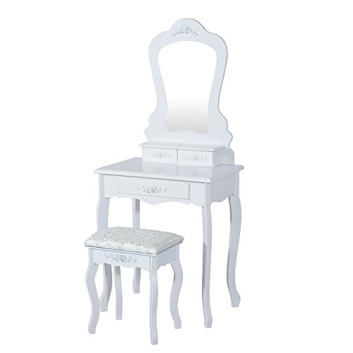 Panana Girls Dressing Table Make Up Desk Vanity Table for Bedroom (White, 4 Drawer)