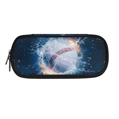 AQYAPTOIY Baseball Boys Cool Pencil Case for Kids Spcial Pencil Pouch for Children Black Pen Bag with Double Zipper Pencil Box for Girls Adult Women Make Up Bag for Office,Black