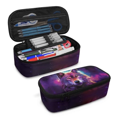 AQYAPTOIY Starry Wolf Pencil Case for Boys Large Capacity Pencil Bag for 3-14 Years Kids Pencil Pouch for 3Rd 4Th Children Pencil Box for Girls Adults Women Make Up Bag for School Supplies
