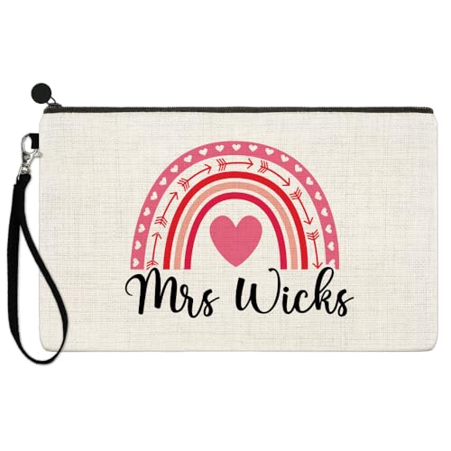 EnvyFone Personalised Pencil Case - Heart Rainbow - Back to School Stationary Girls Make Up Organisers - with Name