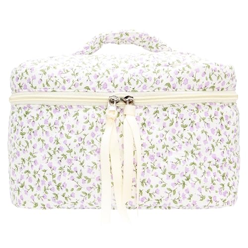 PAZIMIIK Cotton Makeup Bag for Women Large Quilted Travel Cosmetic Case Girls' Make Up Organizer,35