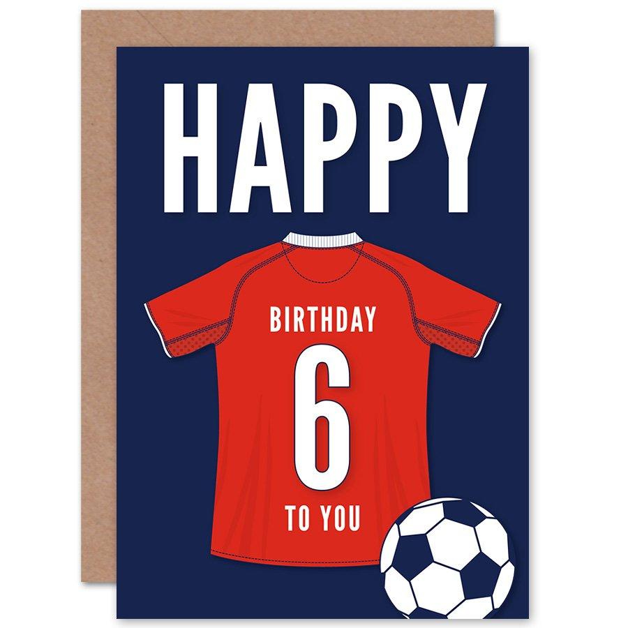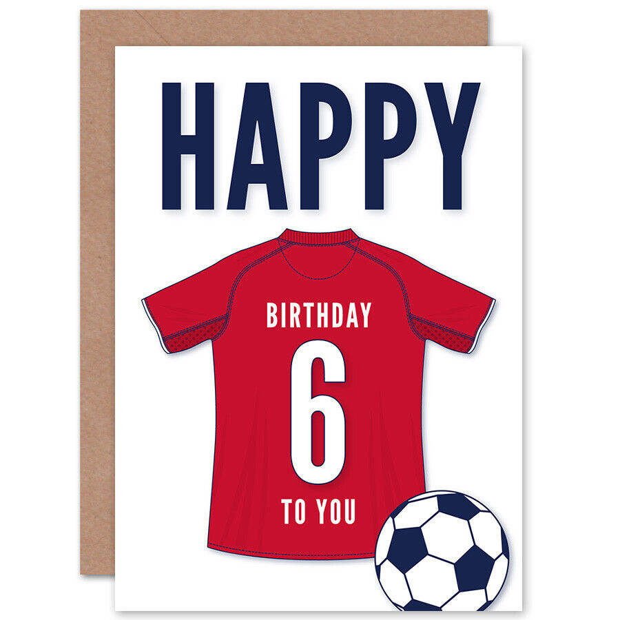 Soccer Football 6th Birthday Card for Boys Girls Red Jersey Top on White
