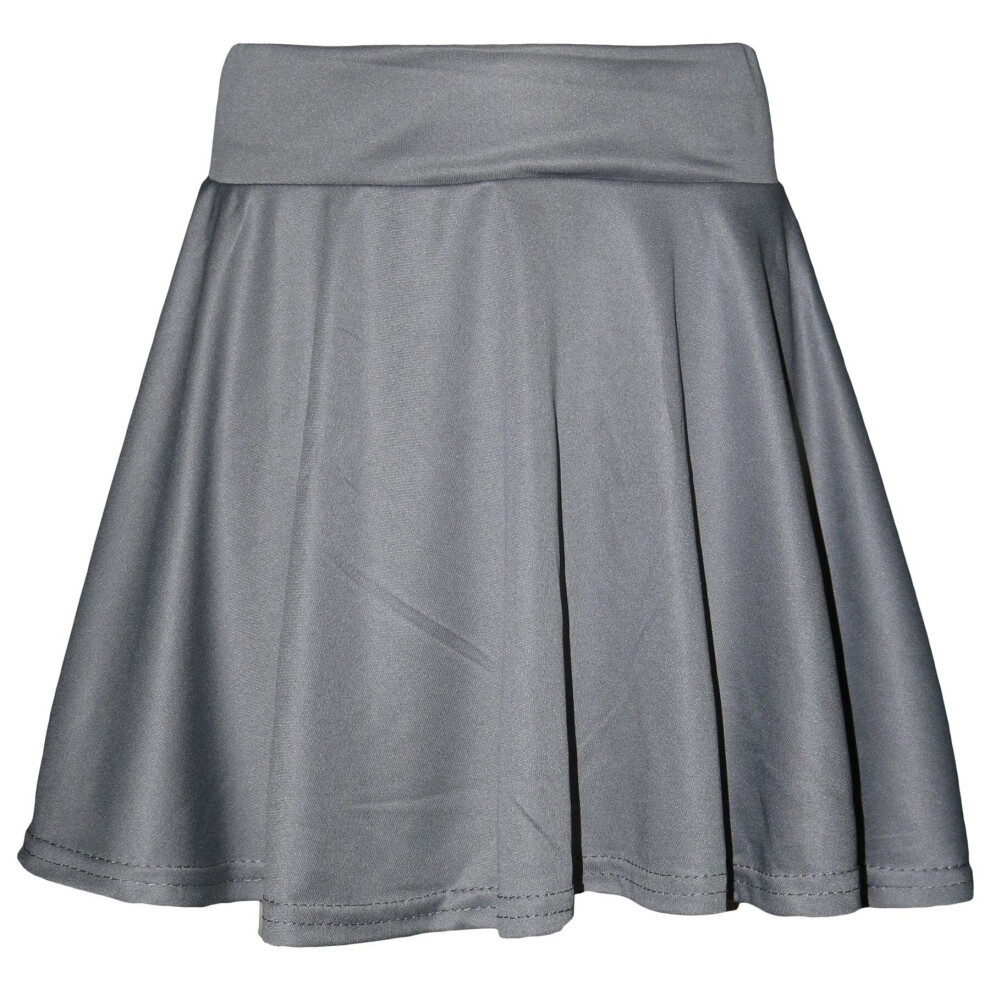 (11-12 Years, Steel Grey) New Girls Skater Skirts School Summer Plain Skirt