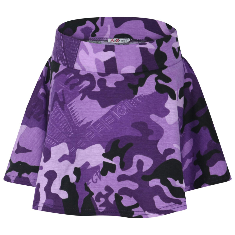(9-10 Years, Camo Purple) New Girls Skater Skirts School Summer Plain Skirt