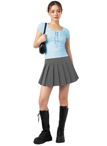 L S U Girls Skirts Girls School Skirts Ladies Skirt Drop Waist All Round Pleated Skirt Black Grey Navy (as8, Numeric, Numeric_16, Regular, Regular, Grey)