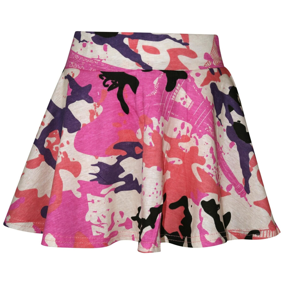 (5-6 Years, Camo Baby Pink) New Girls Skater Skirts School Summer Plain Skirt