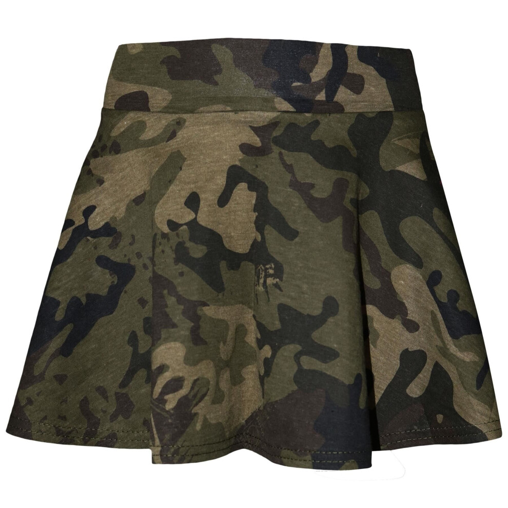 (13 Years, Camo Green) New Girls Skater Skirts School Summer Plain Skirt