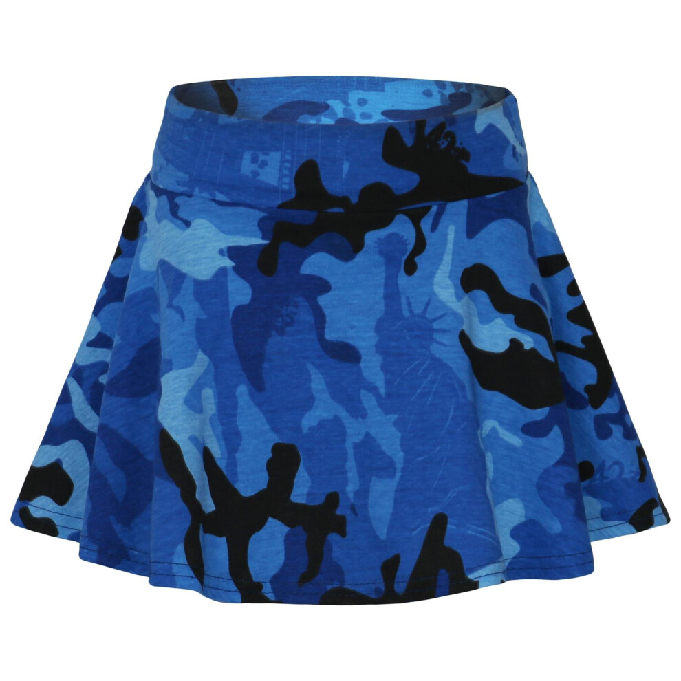 (9-10 Years, Camo Blue) New Girls Skater Skirts School Summer Plain Skirt