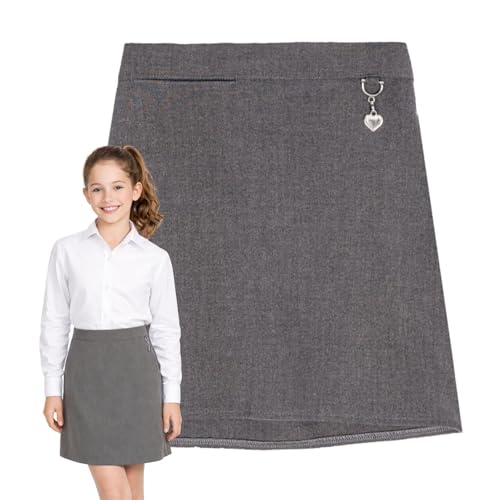 SchoolStitch® Girls Uniform School Skirts, Lycra Elasticated Back School Skirt, Plain Girls Uniform Summer Skirts with Heart Attachment Front Pocket, Sizes 2-16 Years Grey