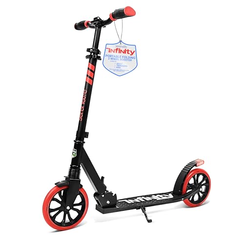 SereneLife Folding Kick Scooter, Kick Scooter for Kids Ages 8–12, Boys, Girls, Teenagers 11–15, Stunt Folding Scooter, Adult Scooter with Big Wheels, Lightweight & Adjustable, Red