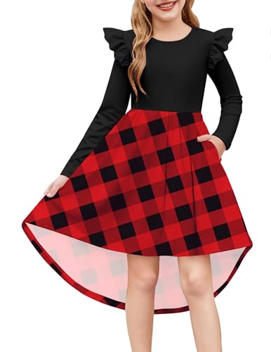 Arshiner Girls Tartan Dress Festival Checked Long-Sleeved Dresses Children's Round Neck Ruffledress Christmas Partydress Autumn Kids Winterdress 140/9-10 Years